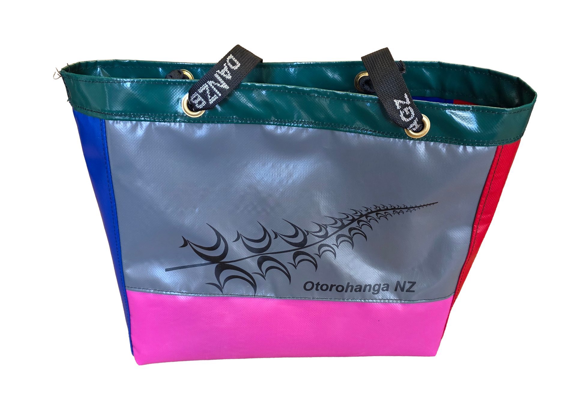 A bright, durable, and unique NZ-made bag crafted from multicolour PVC strips and panels. Designed for everyday shopping or beach trips, each bag is one-of-a-kind and built to last.