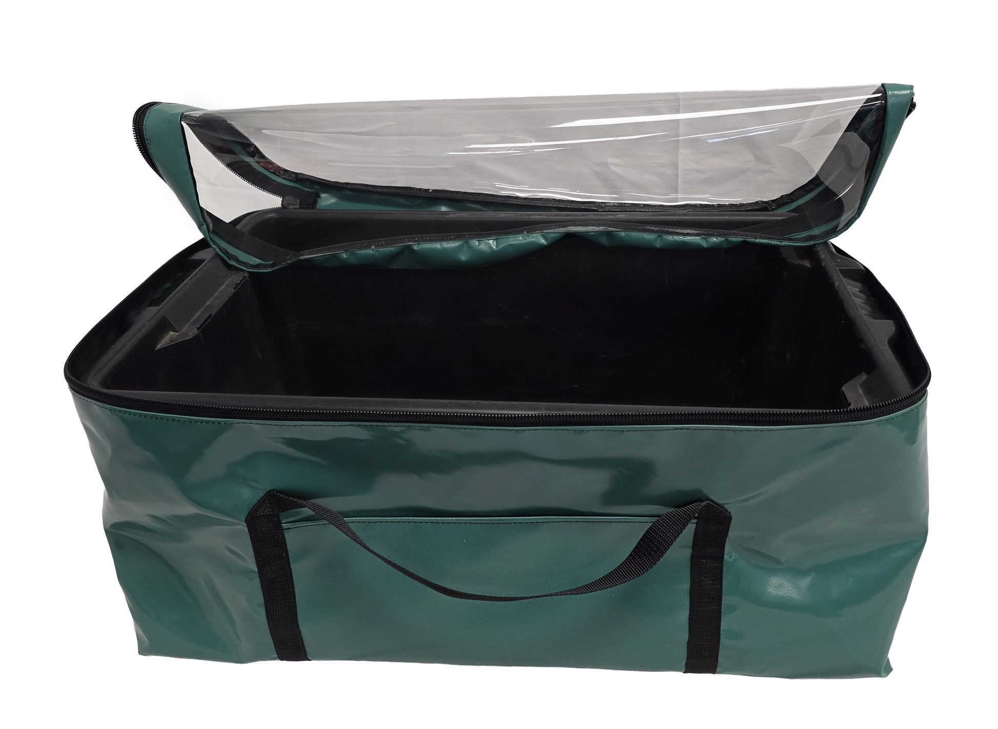 A tough, NZ-made PVC fish bin bag designed to fit standard fish bins for clean, easy transport. Features a clear lid, three-sided zipper closure for full access, and durable carry handles built to handle heavy loads.